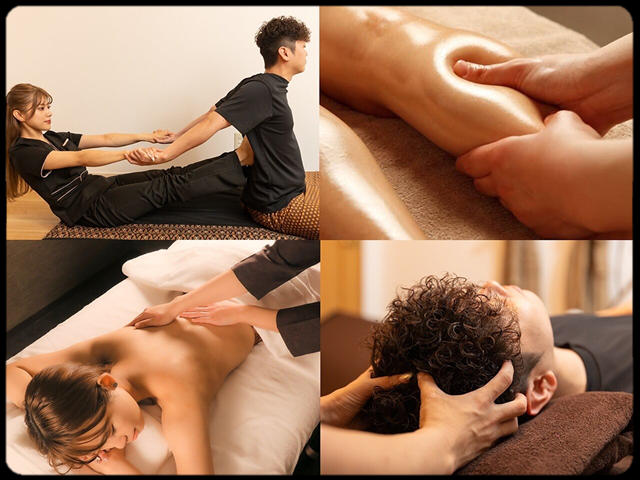 その手法は(圧迫)(把握)(柔涅)(軽擦)(叩打)と様々なテクニックがあり、ヨガ要素を取り入れながら、一度体験するとその心地よさに、やみ付きになること請け合いです!